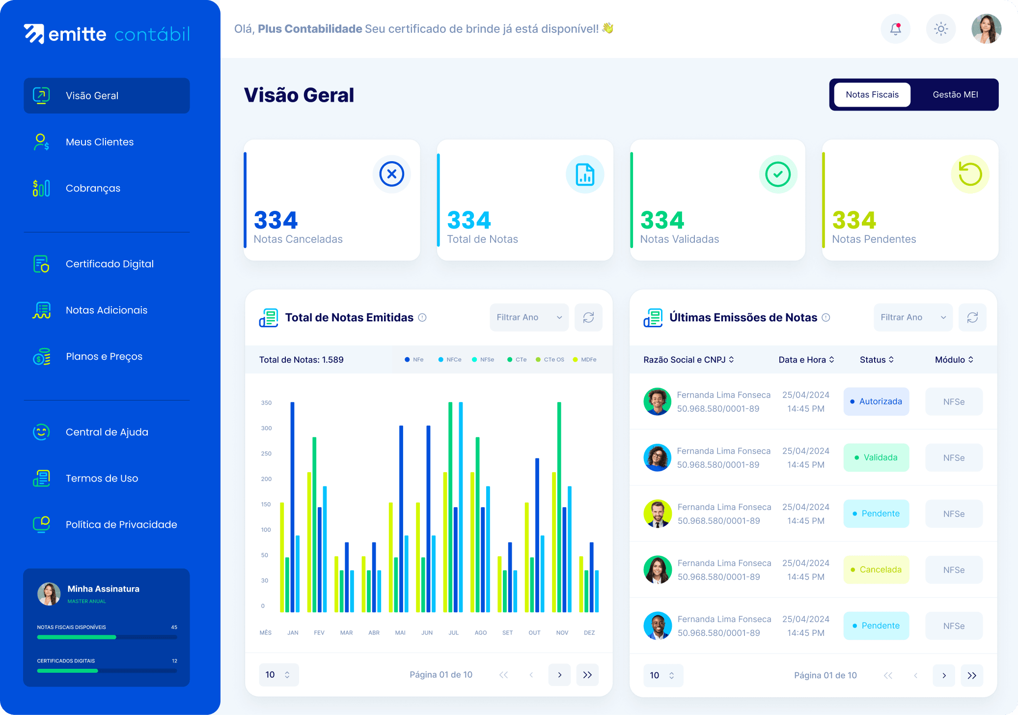 O Emitte transformou a gestão do meu negócio. Agora, emito notas fiscais com apenas alguns cliques. É incrivelmente fácil de usar e conta com um suporte excepcional.